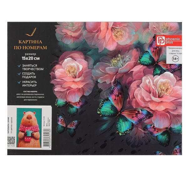 Картина по номерам 15*20 Феникс Капибара с кофе холст на подрамнике 71239