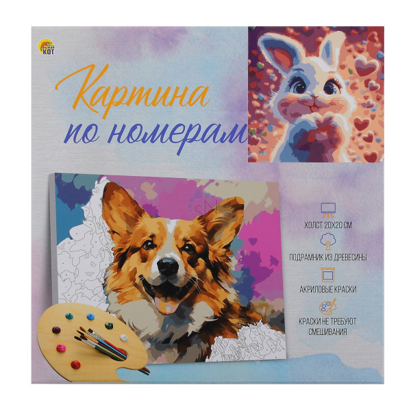 товары для офиса и школы Картина по номерам 20*20 Рыжий кот Пушистый заяц с сердечком холст на подрамнике Х-0750