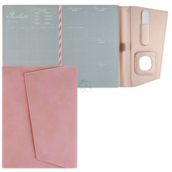 Ежедневник А5 н/д тв обл 7Бц к/з 120л Escalada Спилок делавэ ляссе зеркальце и пилка для ногтей на магните 70605 розовый