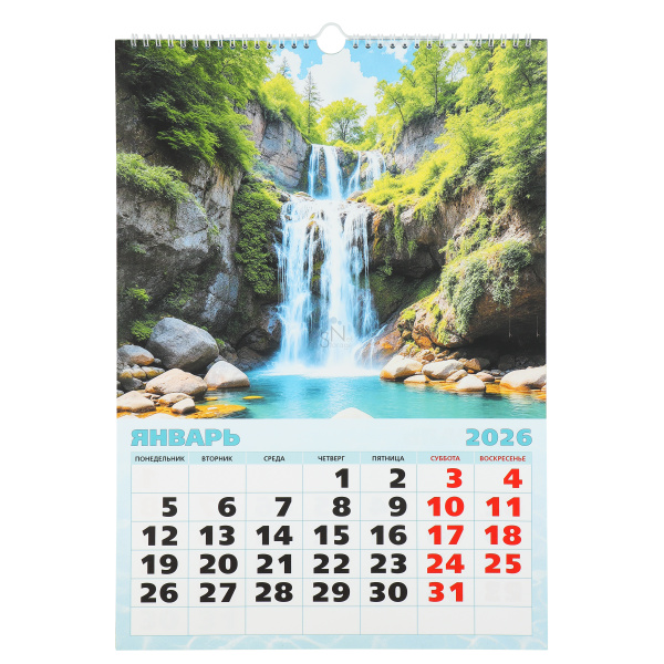 Календарь перекидной настен 2026г 30*42 с ригел Водопад Квадра 9717
