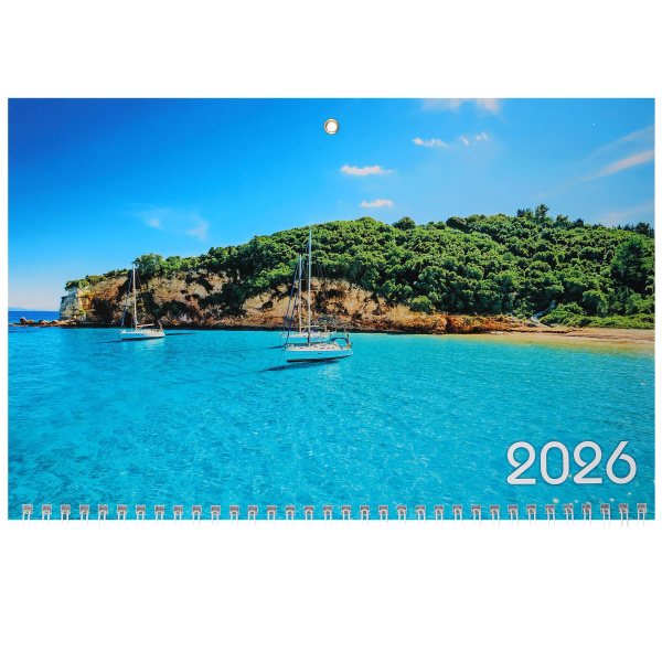 Календарь кварт настен 2026г 30*69 Эконом 3блоч 1греб с бегун Голубая лагуна Hatber 3Кв1гр3_34253