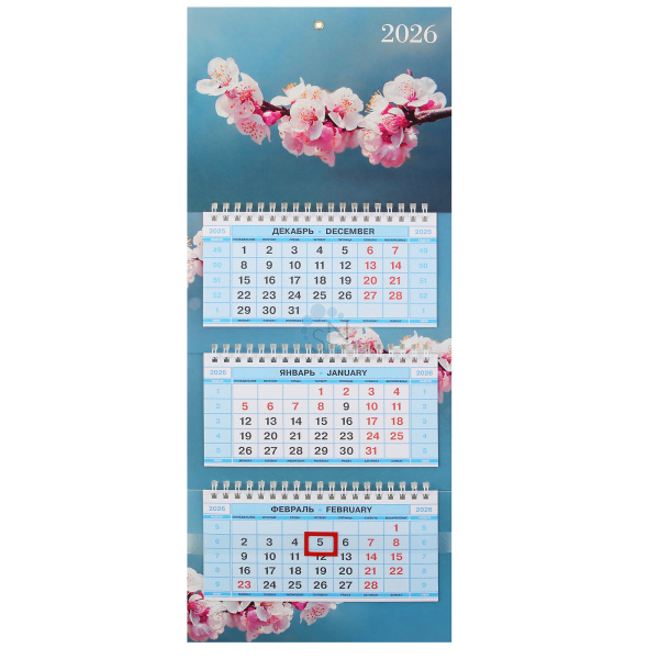 Календарь кварт настен 2026г 19*47 3блоч 3греб с бегун МИНИ-3 Цветущая сакура Hatber 3Кв3гр5ц_33709