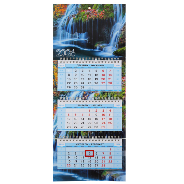 Календарь кварт настен 2026г 19*47 3блоч 3греб с бегун МИНИ-3 Музыка воды Hatber 3Кв3гр5ц_13737