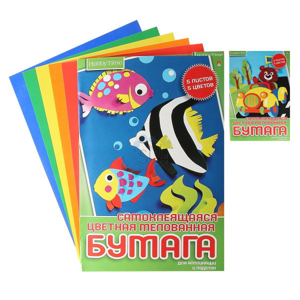 Набор цветной бумаги А4 5л 5цв мелованная самоклеящаяся в папке HOBBY TIME Альт 11-405-244 (20) ассорти